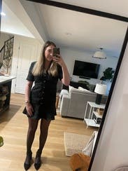 The dress is very cute but not amazing. The dresses material is very thick. You would want it to fit on the tighter side but don't, b/c the buttons are a smudge too far apart which leaves room for the material to gape open or pull. If you size up, it feels boxy and the material from the chest up to the shoulders was too big. I wore it once to a work function and received compliments. I would not rent it again.