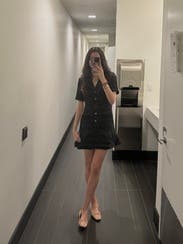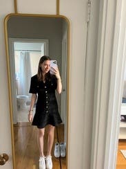 I love everything Sandro! I was debating getting the 36 or 38 and went with the smaller size and it was not too short on my 5’7 frame. Didn’t even have to pair pantyhose with it. I would probably go up a size next time, just because there was some gaping between the buttons near my stomach but that only happened when I sat down. Wore some compression shorts underneath to block any skin from showing. Didn’t dock a star for that because it’s really a sizing issue only. I have such a hard time finding short dresses for work that don’t look like mini dresses but aren’t midis either and this was IT!!