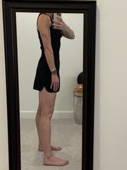So comfortable and cute. Nice thick stretchy material. A little short, have to be careful when bending. I’m 5’6” though, if you’re a little shorter should be fine.