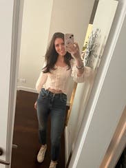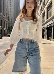 Although I rented my usual size in another Sandy Liang top without issue, I decided to size up with this one because of the buttons. So glad I did because there's no way I could have worn the 4. Loved the longer sides & the open sleeves - so unique. Also appreciated that it wasn't overly cropped & worked perfectly with my mid-rise boyfriend jeans. Great top for spring & summer weekend wear.
