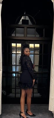 This dress would’ve been perfect if I sized up. It was very tight in the arms and chest. Really short and see through which I don’t mind but had to wear little black shorts. It’s a really fun dress, I wish it fit.