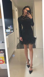 The fit of the dress is great and I would have loved it if the feathers were like the pictures. The feathers on the dress I received were not as full and felt like it was a random boa stitched on the bottom. Disappointed because it does not look or feel as high quality as I would have hoped.