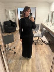Photos really don't do this dress justice!! It's so comfy and so versatile. I dressed it up with heels and gold accessories as a fun NYE outfit.