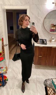 Really loved this dress!!! Had to wear long sleeves and it delivered on that while still being elegant and a little sexy. Flattering fit!