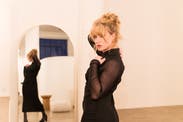 Loved this! Would buy it if I thought I had another reason to wear it. It looks basic but the sheer sleeves give it a surprising edginess. I felt great.
