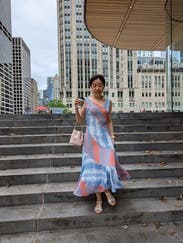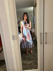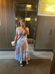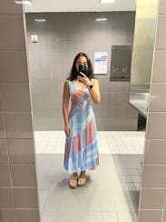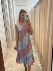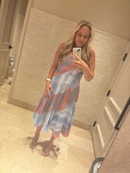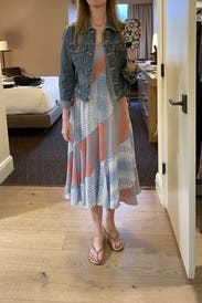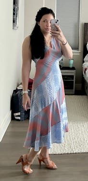 This felt perfect for an outdoor Florida rehearsal dinner. The fit was so flattering and, though I usually avoid bold patterns, this one worked for me. The asymmetrical neckline did irritate me on a sensory level a little bit, but looked great visually.
