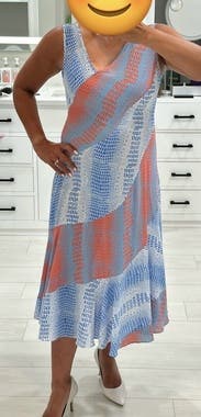 A fun print that’s easy to wear. Slightly sheer so a slip may be necessary. Never had a dress with a diagonal zipper!