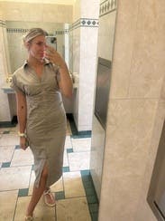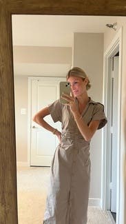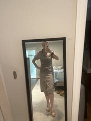 In short - I would skip this rental Long take — the side has a zipper and it fit like a glove honestly but the color is Sooo boring and it gets insanely wrinkly and worse than wrinkly it shows any ounce of moisture so this is not a summer rental you will see all your sweat marks and in not cute places!! The buttons down the middle makes this the worst dress to sit down in as well you’ll be looking for something to cover your lap. Go ahead and grab something else!