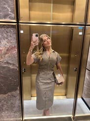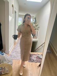 I felt this dress was a great summer work dress and the neutral color palette was very on trend. The dress is fitted so size up.