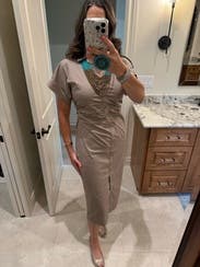 I had rented the bright orange dress and decided to rent it in the tan color. Wore it with my turquoise jewelry. It is a great summer cotton dress!