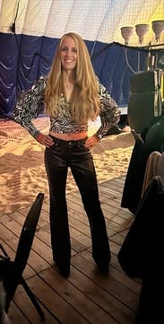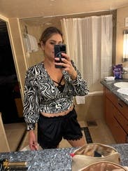Wore this top with leather pants to Valentine’s dinner. I felt sexy but still warm and comfortable on a cold wintry day. The fabric is nice and didn’t wrinkle too much in my luggage which I appreciated. Would rent again.
