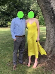 I'm a sucker for yellow and this dress did not disappoint. Tons of compliments and perfect for an outdoor ceremony. I probably could've sized down to the 0 but dress was more or less TTS. Just a note - it didn't lay perfectly flat on my chest and it wrinkled easily during travel.