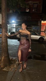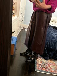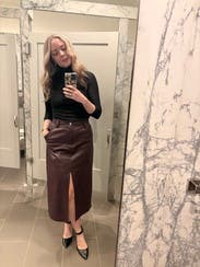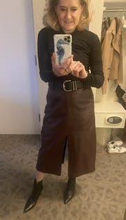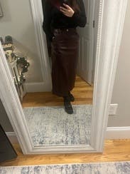 Versatile statement skirt. The leather material doesn't have much give to it though.