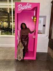 I wore this with a Barbie pink top and boots and received so many complements on my outfit, even from people I don’t know. Love how the dress falls, the waist though is unforgiving so if you are thicker in the waist, it will be tight, but so couldn’t have sized up as it would have been too big everywhere else. Almost didn’t wear this but so glad I did.