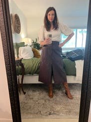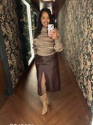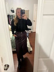 I am so glad I tried this skirt out! I received a lot of compliments and it’s honestly a perfect fall staple. I’m seriously considering keeping this! The only thing I would say is that this is true to size in the way that it’s not vanity sizing- so it’s a little smaller than expected if that makes sense (so if you’re on the fence size up if you don’t want it to be snug). All in all, 100% recommend