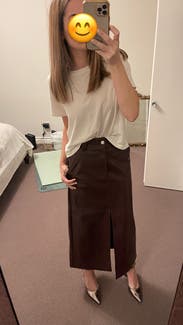 Loved this skirt, versatile color and thought the slit was subtly sexy.