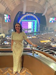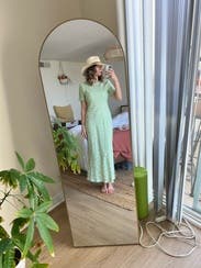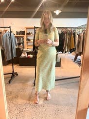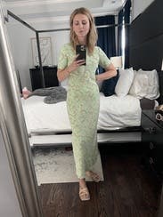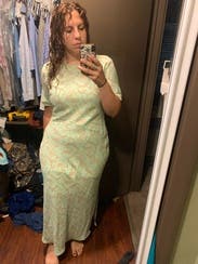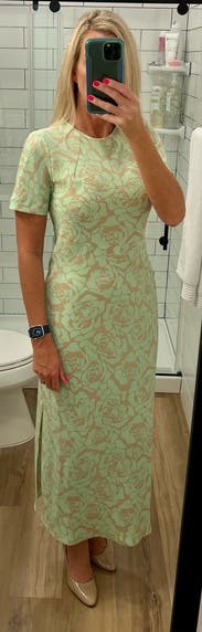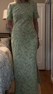 Really liked this rental. It was comfy and classy; I wore it for Mother's Day and a brunch event. Shapewear underneath made it fall better on my body type, and the slit helped it move nicely.