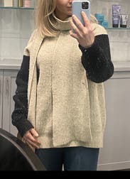 Great winter sweater. Oversized but flattering. Love the scarf detail. Great with leggings and boots.