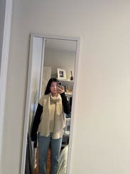 I’ve wanted to rent this since I saw this last year, so glad it became available. Super comfortable and warm. I should have sized down though. Loved the built in scarf for a chilly day in the office. Not super practical, but made it work