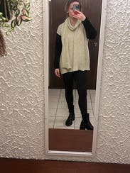 Loved this sweater. I wore this with leggings and high boots. The attached scarf really added extra style. Would definitely rent this again.