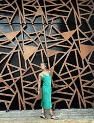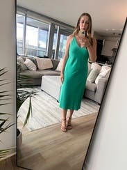 This satin slip dress by Saunders Collective is a luxurious and effortlessly elegant piece. The rich green hue adds a touch of sophistication and versatility, suitable for various special occasions. Pair with statement jewelry and strappy heels to complete the look.
