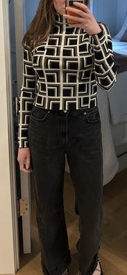I loved the pattern of this turtleneck, I wore it a couple times with wide leg jeans and felt good in it. I got a lot of compliments. It was fitted and looked slightly cropped on my torso so if I rent again I will try the size up! If you want a fun 70s vibe you will love this.