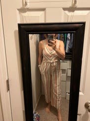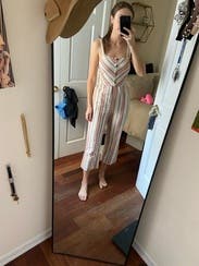 Loved the comfort of this jumpsuit, but it wrinkled easily. Great for beers out with friends!