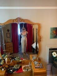 I was barely able to fit this on my 5’10 frame. It’s lined but still a bit see through. It was pretty comfortable but looking back at pictures, it was not flattering around the middle.