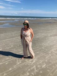 I loved this jumpsuit. Easy on and off, nice tie waist makes it perfect for hourglass figure. I sized up to medium and nice to have the space on top and bottom and still have a fitted waist, though the small probably would have fit, the bodice is ruched all around so very stretchy. The straps are a bit long and not adjustable so this might not work for a petite woman.