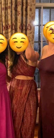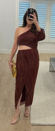 I loved this dress so much. Wore it for a fancy date night and I felt incredible. The cutout and slit make it sexy while still keeping it classy given the length and high quality fabric. Get it!