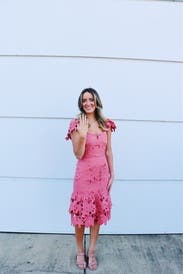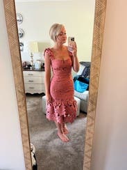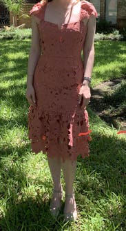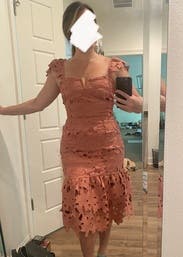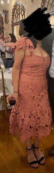 The lace detail was beautiful and so many compliments throughout the night. Because I have a shorter torso and am petite, I needed to pin up the straps. Perfect feminine dress for a spring wedding!