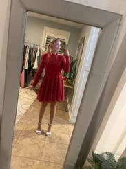 Love this red lace dress. The open back adds a bit sexy feel. Just sad that the fit was a bit too big.