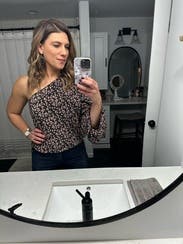 I liked the little tulle detail inside the sleeve - it poofed it up just a little. Top felt modern but age appropriate- I’m 45. Wore with the Ashley Park olive pants