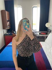 This top is literally everything I was hoping for and more!!! The print is beautiful, the fabric is so nice and thin yet textured. I did wear it backwards with the tag facing front bc I didn't want it to cover my tattoo but you definitely could not tell and it was comfortable like that! Would rent again for sure!