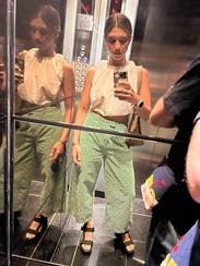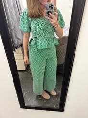 I can't say anything bad about these cute green eyelet pants. I LOVED them. Wore them multiple times and received multiple compliments on them. They fit true to size. They are light weight and super comfy.