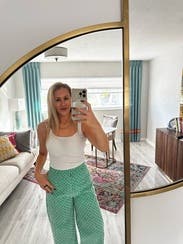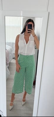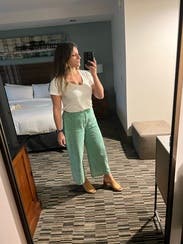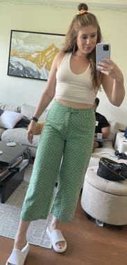 I put a white tank on a white blazer with hot pink loafers for work and it was great. Also wore with just the white tank for a casual look. They’re breezy in that the pattern does have little holes in it, so no good for cold weather. But perfect for Florida! TTS wouldn’t have wanted to go up or down. I’m 5’3” and flats seemed the only option. Maybe if you’re taller they’d seem more of a crop and heels/wedges could work.