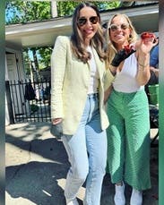 felt like a million bucks in this set. came up with a whole persona - a rich mom from Orange County with a dog in her purse. i miss her so we'll just need to rent it again soon. i'm only 5 feet tall but the pants fit perfectly. there's little lining at the crotch so it's not see through.