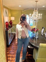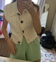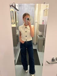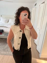 Wanted a cropped sweater vest to pair with high waist and this was just a bit long on a petite hourglass. Was just ok. Paired with Khaite Darcy jeans but was actually a bit longer than I would have preferred with this super high waisted jean.