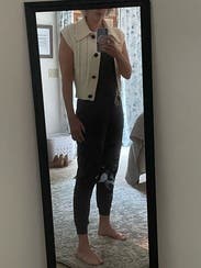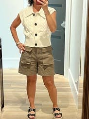 This little vest was amazing! I loved it and wore it a ton while I had it. I was able to pair it with all kinds of different types of jeans and it just looked so cute. Not cropped and hit me in the right spot on my waist, so it was flattering on my frame. This truly is an amazing piece and highly recommend!