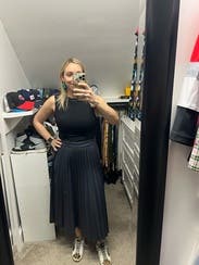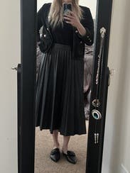 The skirt was so wrinkly — the pleats are not defined AT ALL. It also made me look really wide.