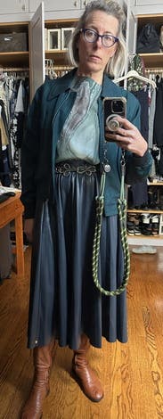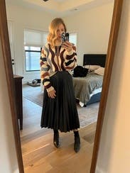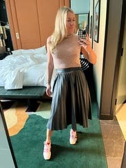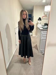 I love a pleated skirt and I love all things leather so this was great. I dressed it down with a baggy sweater and sneakers. Comfortable and fit well.