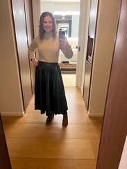 Will likely rent this again. It was a great skirt to wear for a full day of work. Can be elevated or more casual depending on how you style it.