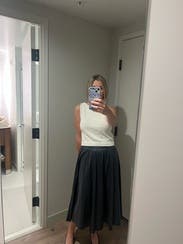 Wore this skirt for a work event and it fit perfectly. The pleats and soft navy color were great. Very versatile and would definitely rent again!