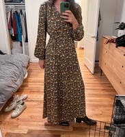 It fits so well and is really elegant. There's buttons for the wrap part and the top DOESNT flop open. There's also a clasp at the chest if you need to use it. Honestly, it's like the only wrap item I've ever worn that stays put. My partner said this is his favorite thing that I have rented. Folksy rockstar vibes but in a sexy way because the leg slit is quite high. The dress is long. I'm 5'9 and it's borderline too long for me. Wore with booties, blundstones, or sneaks!