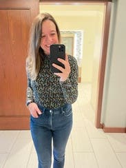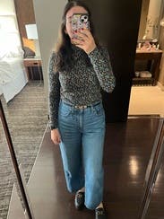 I think soft printed turtlenecks are my new fav. Light enough you aren't sweating to death and not itchy! Love this patterned one and super cozy, great for layering too!