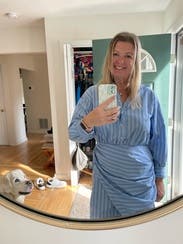 This shirt dress is everything. So flattering and easy. I could get away with not pressing it but it was easy. Also I would have sized down one size. I tend to overcompensate on size because of my top but it made the bottom looser too and it wasn’t necessary. Snugger would have been even cuter.