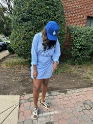 I was so unsure about this one, and to be honest maybe still am. The fit is great and the compliments come rolling in when I wear this dress. It’s classic button down material and very comfy, it does stay wrinkly which is annoying.