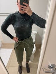 This is one of those easy rentals that you get way more wear out of that you expect. I ended up wearing this several times before returning it. It was very similar to Ulla Johnson’s turtlenecks. Very soft, flattering, forgiving and form fitting at the same time. The pattern is green and black feathers. Loved it!
