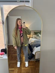 Fit was great and loved pairing with some jeans. Added a little fun color to my outfit!