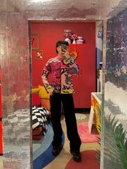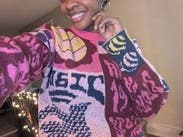 Material is cozy and the fit is a fun oversized look as expected. I think the designs were a bit to chaotic for my style and I didn't end up wearing it as much as I thought I would